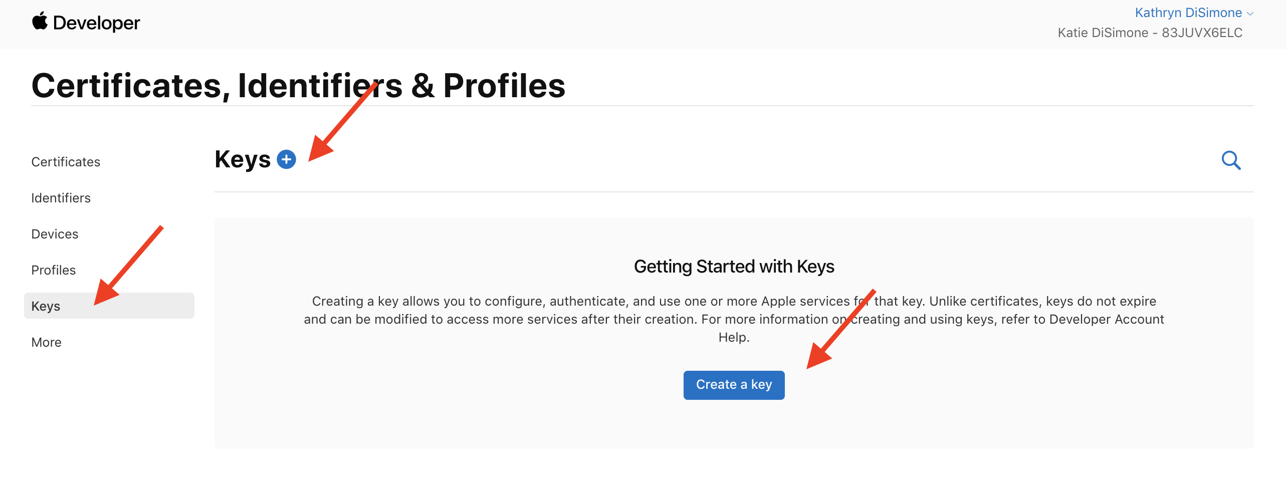 If you do not have APNS credentials, you need to create a key and grant it access to the Apple Push Notification Service (APNS).