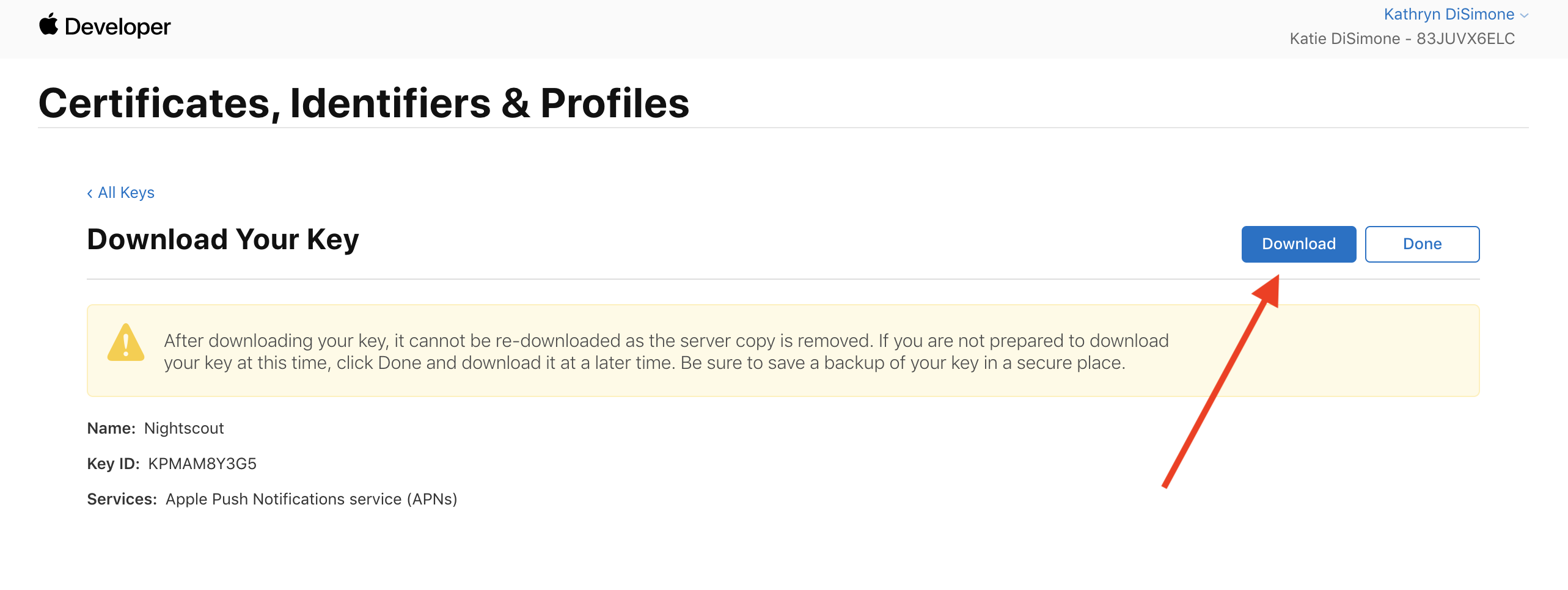 Note - these directions are copied from LoopDocs so it suggests you name the key Nightscout. It is probably best to stick with that naming for APNS keys.