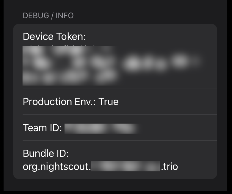 If you have empty rows in the Debug / Info screen, the most likely problem is the default profile is not coming from Trio. See Update Profile. If you took those steps and still have missing rows, return to Configure LoopFollow Trio Remote Control and try again.