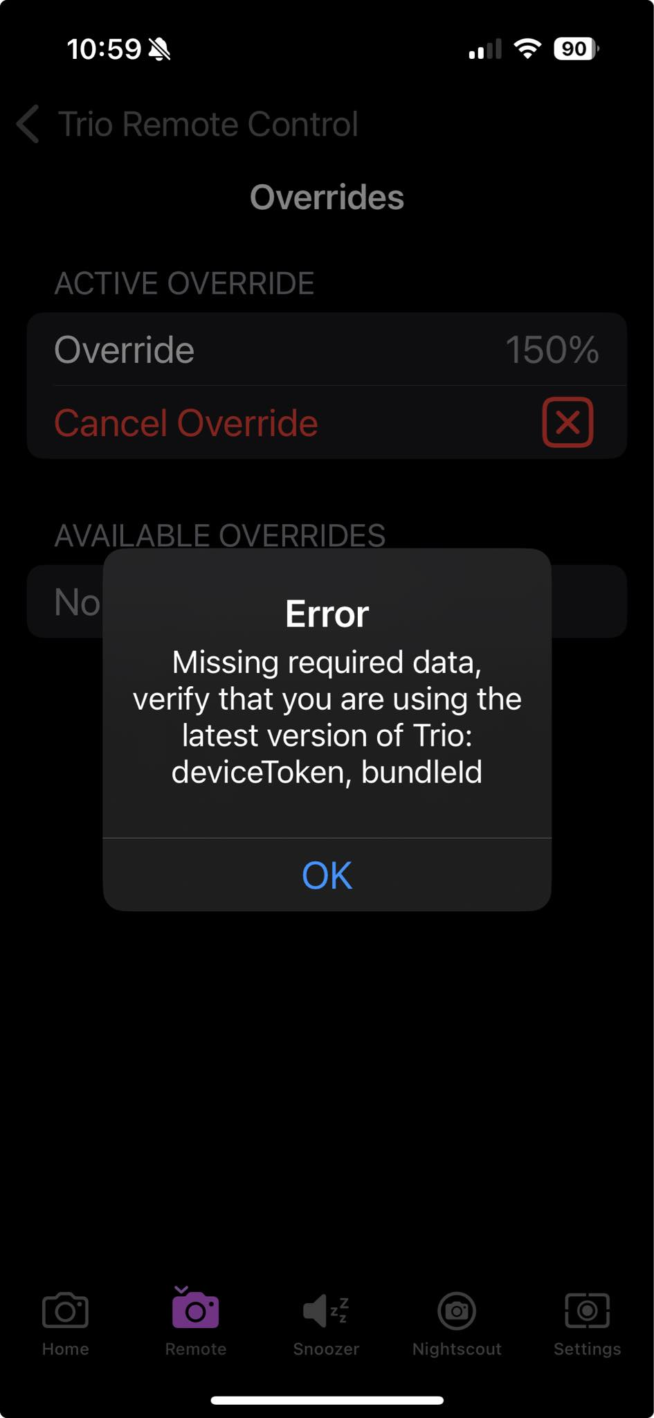 Other signatures that you need to force the update are shown in the graphics below - for both these instances, Trio Remote Control (TRC) was working with LoopFollow and then stopped working: