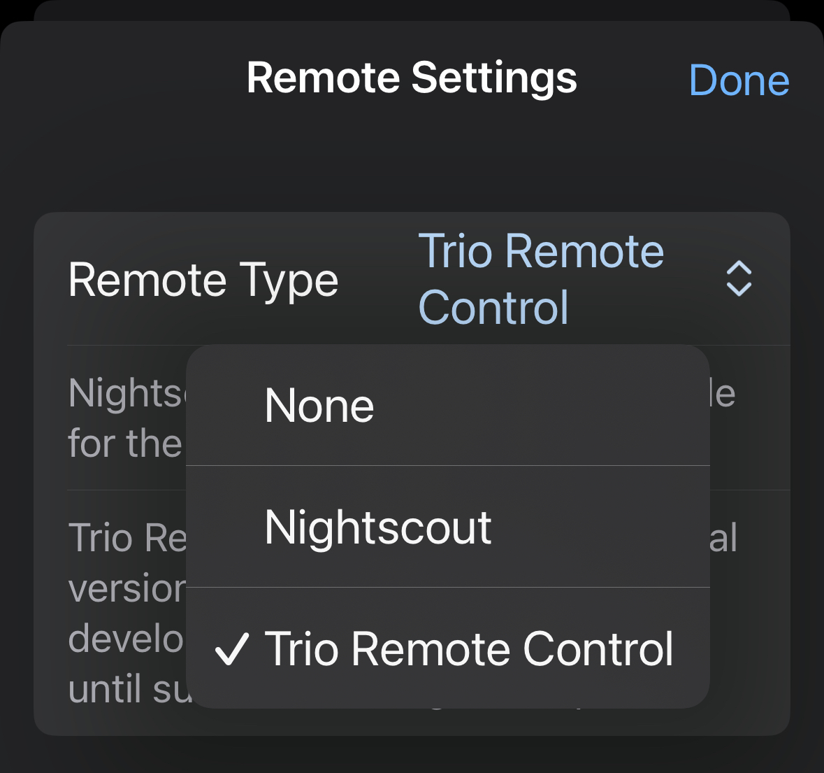 - Cannot select Trio Remote Control in LoopFollow: Update Profile